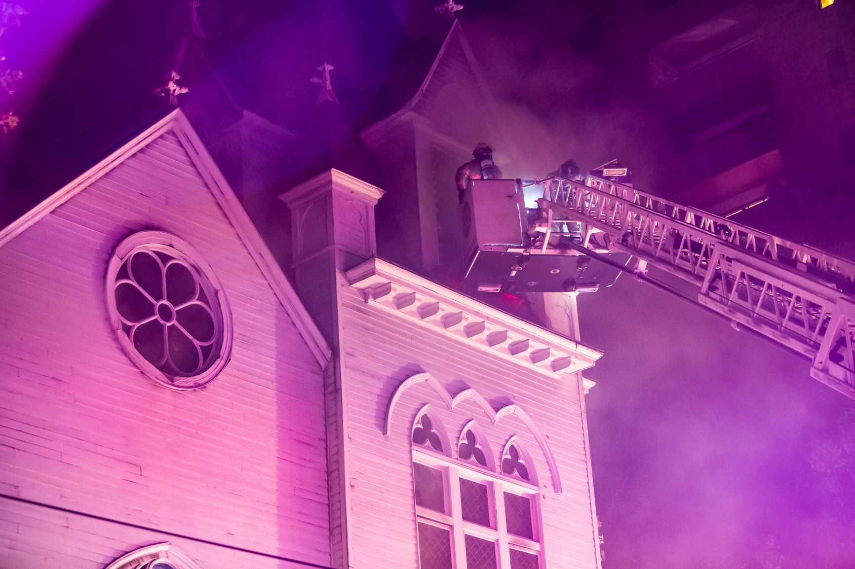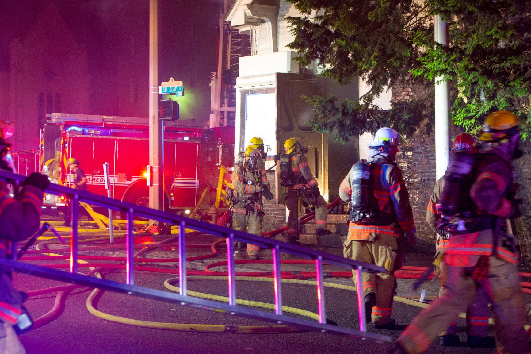 Members of the Portland Fire Investigations Unit are asking for any clues, pictures or videos anyone may have regarding last night's fire in downtown Portland. At about 9:20p Sunday night, the Bureau of Emergency Communications (BOEC) received multiple reports of a fire in a church on the corner of SW 10th Ave and SW Clay St. Upon arrival, crews reported tall flames showing from the windows on the south side of the 3-story building. Due to the size of the fire and proximity of nearby buildings, incident commanders called for a second alarm to bring additional resources to the scene for esxtinguishing the man fire and protecting nearby buildings . After confirming no one was rtrapped inside the building, crews set up defensive operations to attack the fire from outside. The early order and arrival of these additional firefighters helped get a good and early stop. Firefighters were then able to transition into an offensive interior fire attack to ensure the extinguishment of any hot spots inside. The fire was declared "under control" at approximately 9:50pm.