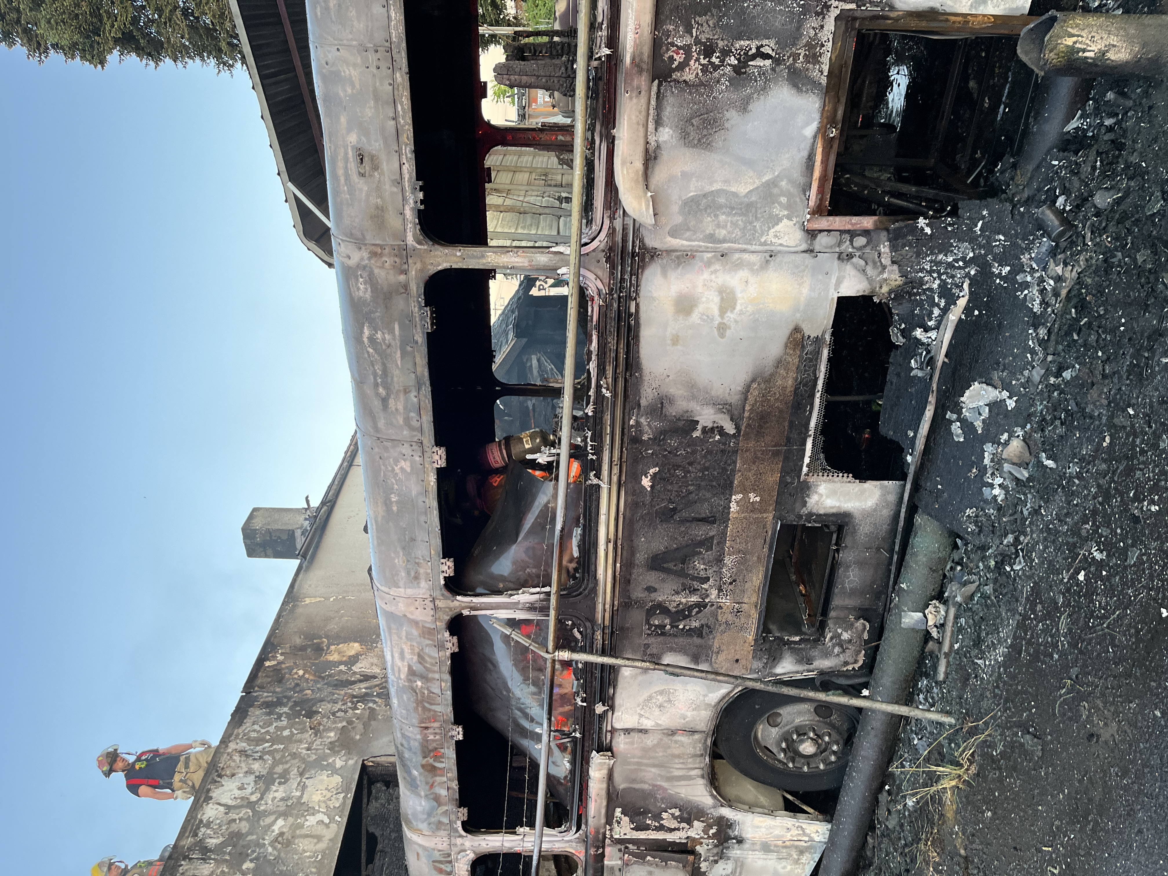 With the fire extinguished and minimal damage to the structure, crews began to overhaul the bus and reload all the hose on the ground from the firefighting activities. As some crews were clearing the commercial fire, the residential fire was dispatched in SE PDX where a few diverted from the path to their home station to the fire.