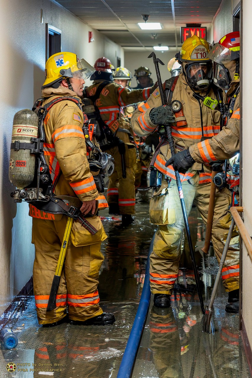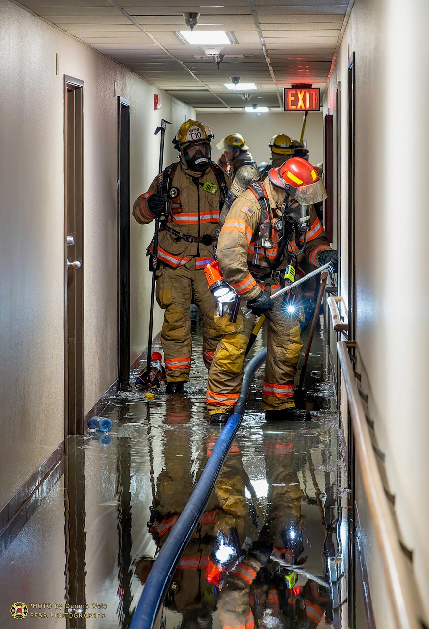 Crews found a room and contents fire in an extremely cluttered 4th floor apartment unit that was partially suppressed by the building’s sprinkler system. Crews stretched a hose line to this unit and quickly extinguished the remainder of the fire. Crews found that this fire did not extend into the structure beyond this single apartment unit. Building occupants either self-evacuated or sheltered in place. There were no injuries related to this fire, however one occupant was evaluated by EMS for a possible panic attack. Several apartment residents were displaced from 3rd floor apartments due to water damage and the Red Cross is assisting these occupants.