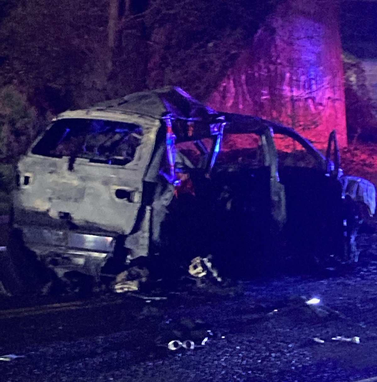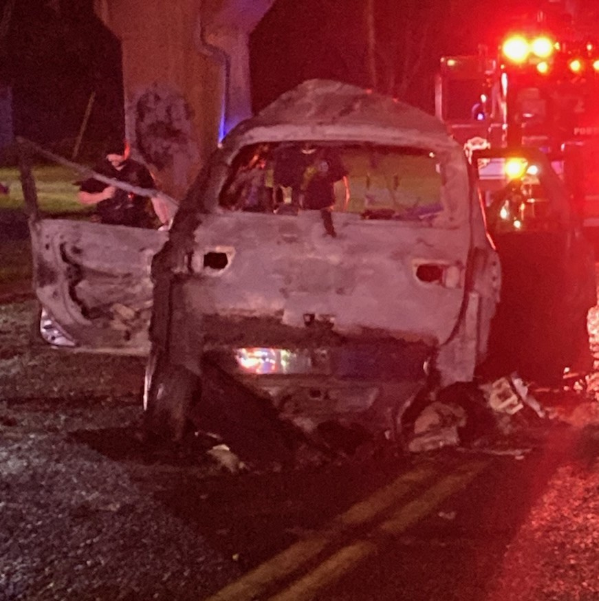 Fortunately, with the assistance of a local community member, all occupants were safely out of the vehicle at the time the hose lines began to cool and extinguish the fire. While none of the occupants received any burn injuries, each was significantly injured because of the collision that occurred and was the cause of the fire. The details of the crash and cause are unknown currently.