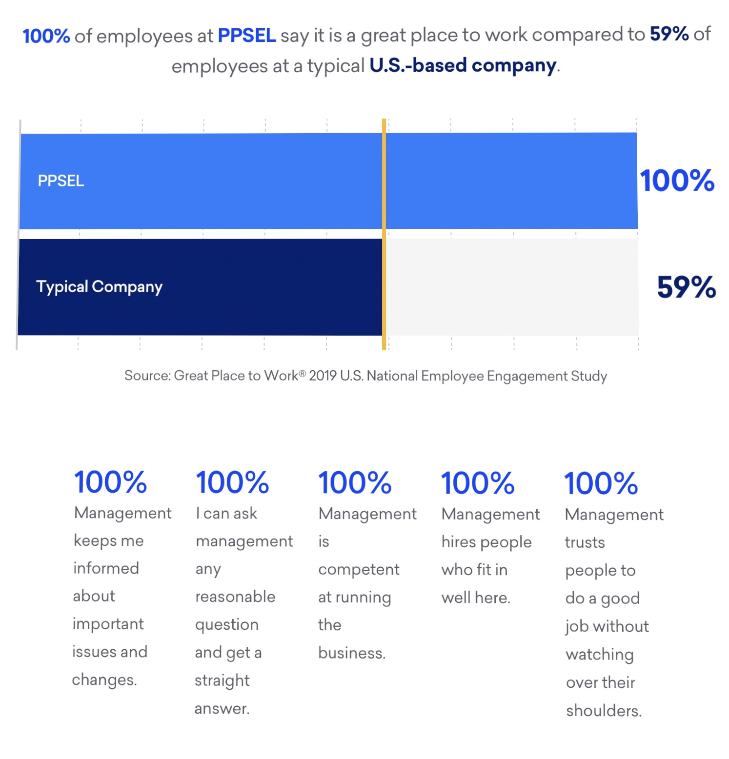 “Best Workplaces like PPSEL have built dynamic, flexible, and transparent workplaces founded on trust,” said Michael C. Bush, CEO of Great Place to Work. “This gives companies on this list a powerful opportunity not just to do well for their people, but also to do well for their businesses.”