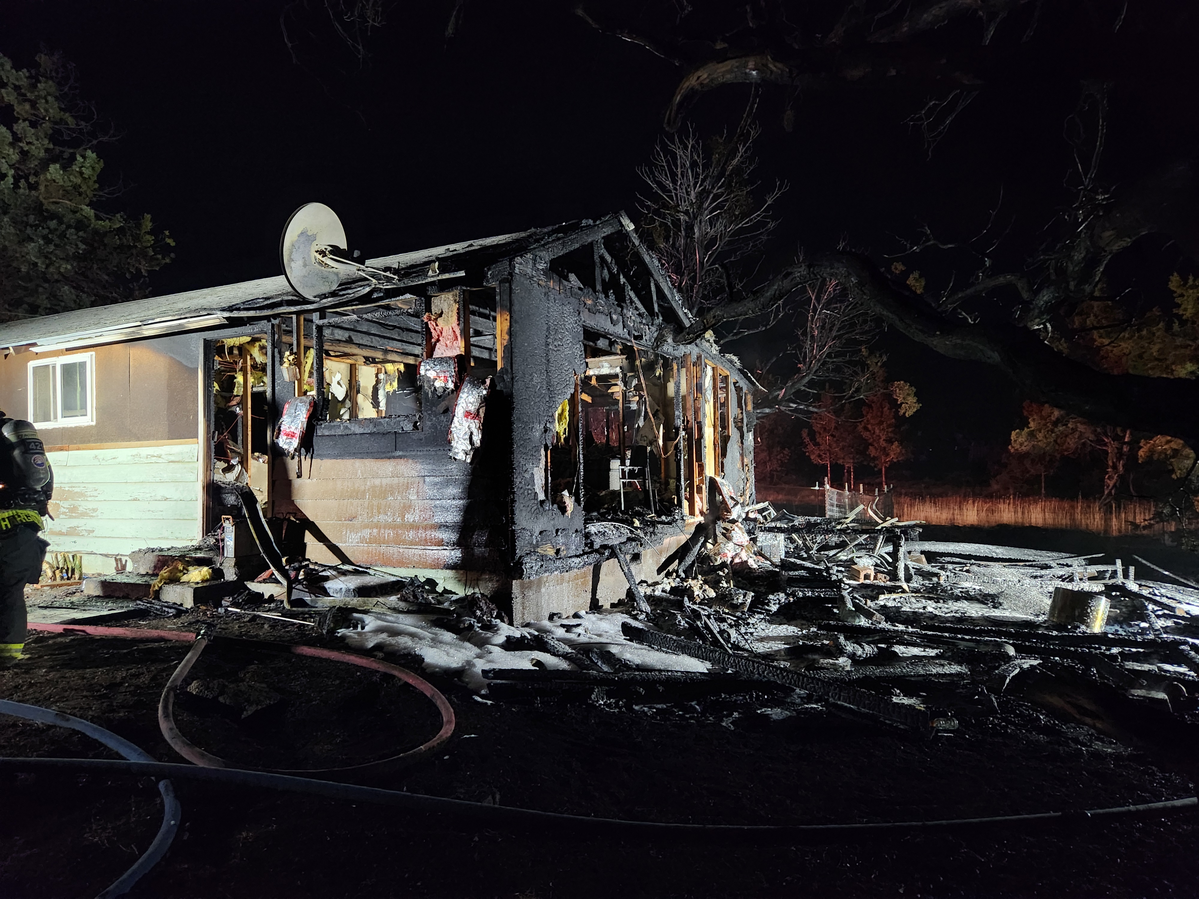 When fire crews arrived on scene they observed a single story residence with heavy fire showing and spreading to the surrounding trees and grass. Fire crews quickly deployed handlines to control the structure fire and to control the fire spreading into the wildland urban interface.