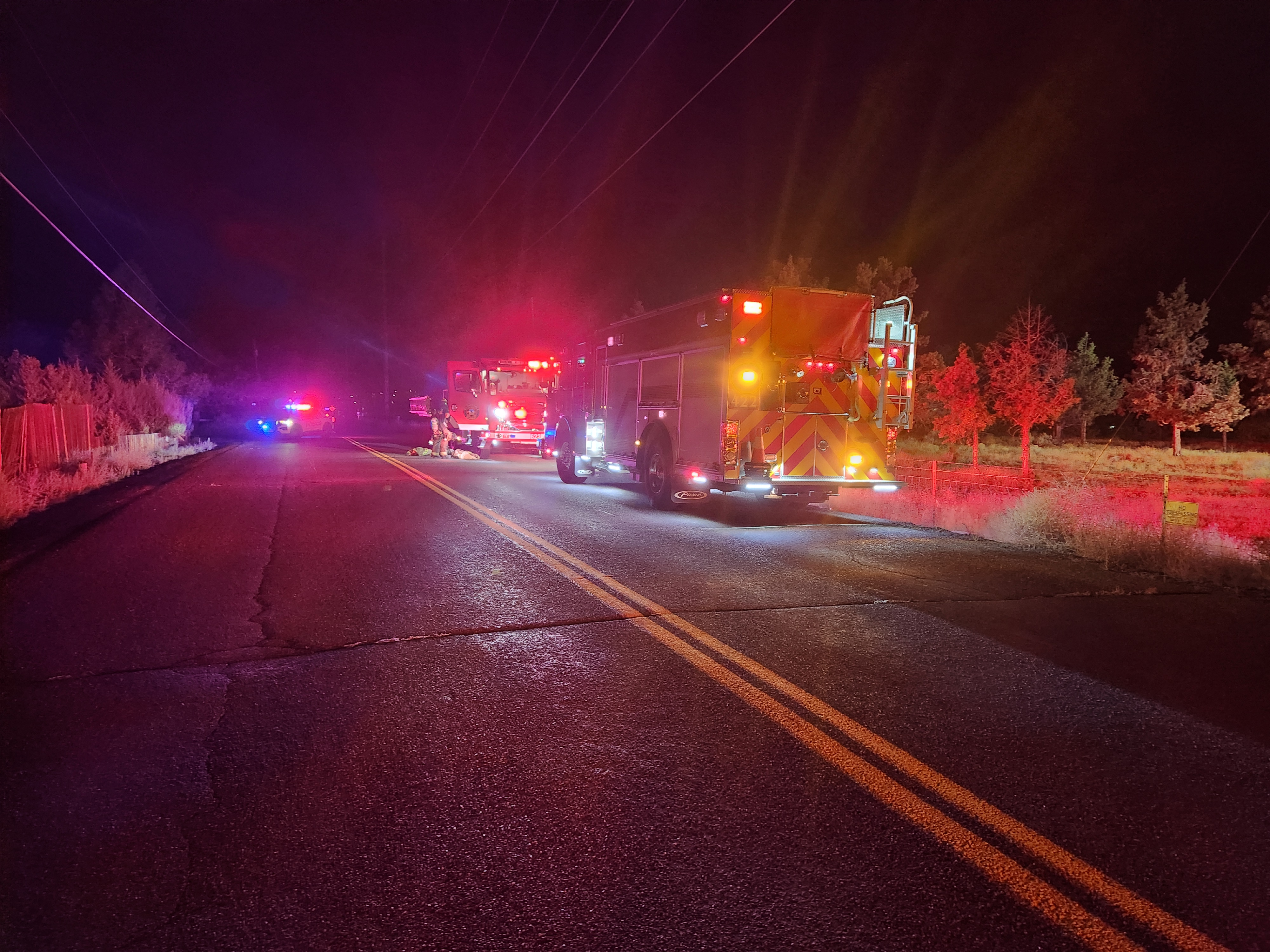 September 24, 2025-REDMOND, OR-Redmond Fire & Rescue was dispatched to a possible structure fire at 355 SW 35th St at approximately 9:20pm this evening. As crews were responding multiple 911 calls were received at Deschutes County 911 reporting a large fire that was spreading to nearby trees.