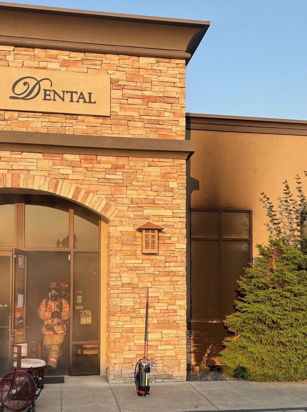 Firefighters arrived on scene to find light smoke showing from Suite #110, currently occupied by Eden Dental. Firefighters also observed black soot located on the exterior portion of the commercial structure.