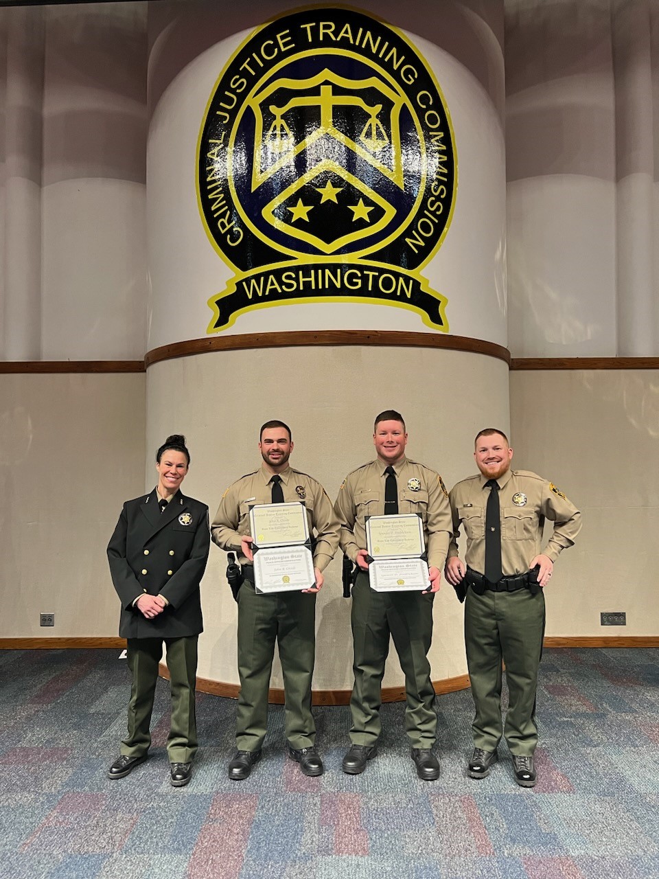 The Skamania County Sheriff's Office is proud to announce the recent graduation of two Patrol Deputies. Deputies Ben Childs and Spencer Fredrickson successfully completed the 720-hour Basic Law Enforcement Academy course in Burien, Washington and graduated on 03/26/2024. Not only did Deputies Childs and Fredrickson graduate, but they also received exceptional achievement awards. Deputy Childs earned the Patrol Partner Award, the Squad Leader Award, the Highest Academic Achievement Award, and the Highest Overall Achievement Award. Deputy Fredrickson earned the Highest Achievement in Practical Skills Award.