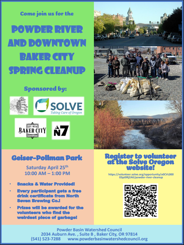 Join a community cleanup along the Powder River followed by snacks and prizes. Volunteers will help remove trash from the river corridor and surrounding downtown area.