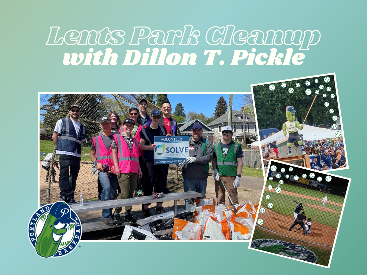 Event Description: In celebration of Earth Month SOLVE is inviting neighbors to Lents Park for a fun, family-friendly cleanup, with a special appearance by Dillon T. Pickle, mascot of the Portland Pickles baseball team and Saucy T. Sausage from Portland Bangers FC. Volunteers will collect litter and recyclables around the park and surrounding neighborhood, then gather afterward for snacks and beverages. It’s kind of a big dill, and a great opportunity to meet Dillon, connect with the community, and help keep Southeast Portland clean. More details