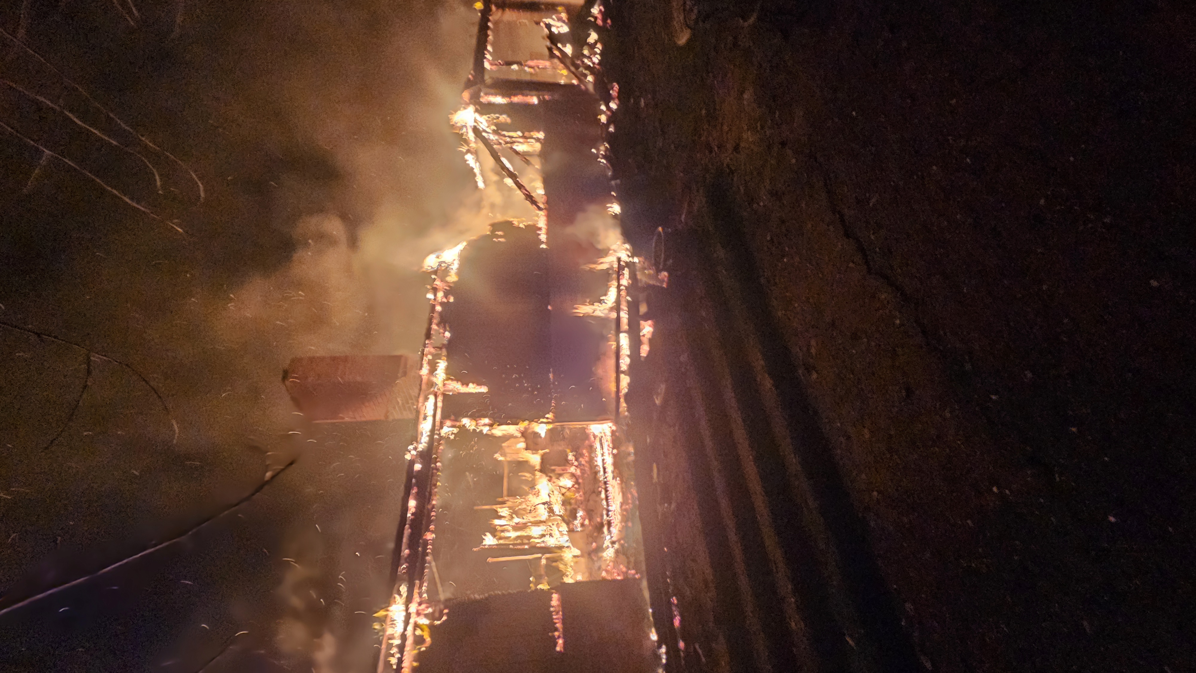 SWEET HOME, OREGON — Fire crews responded to a 2-alarm structure fire involving a fully involved residential home on Old Hufford Road. Due to the intensity of the fire and rural water supply needs, a substantial response was requested from neighboring agencies. A family member who lives across the ridge happened to be up and noticed a large fire, reporting it to 911 at 4:22 am.