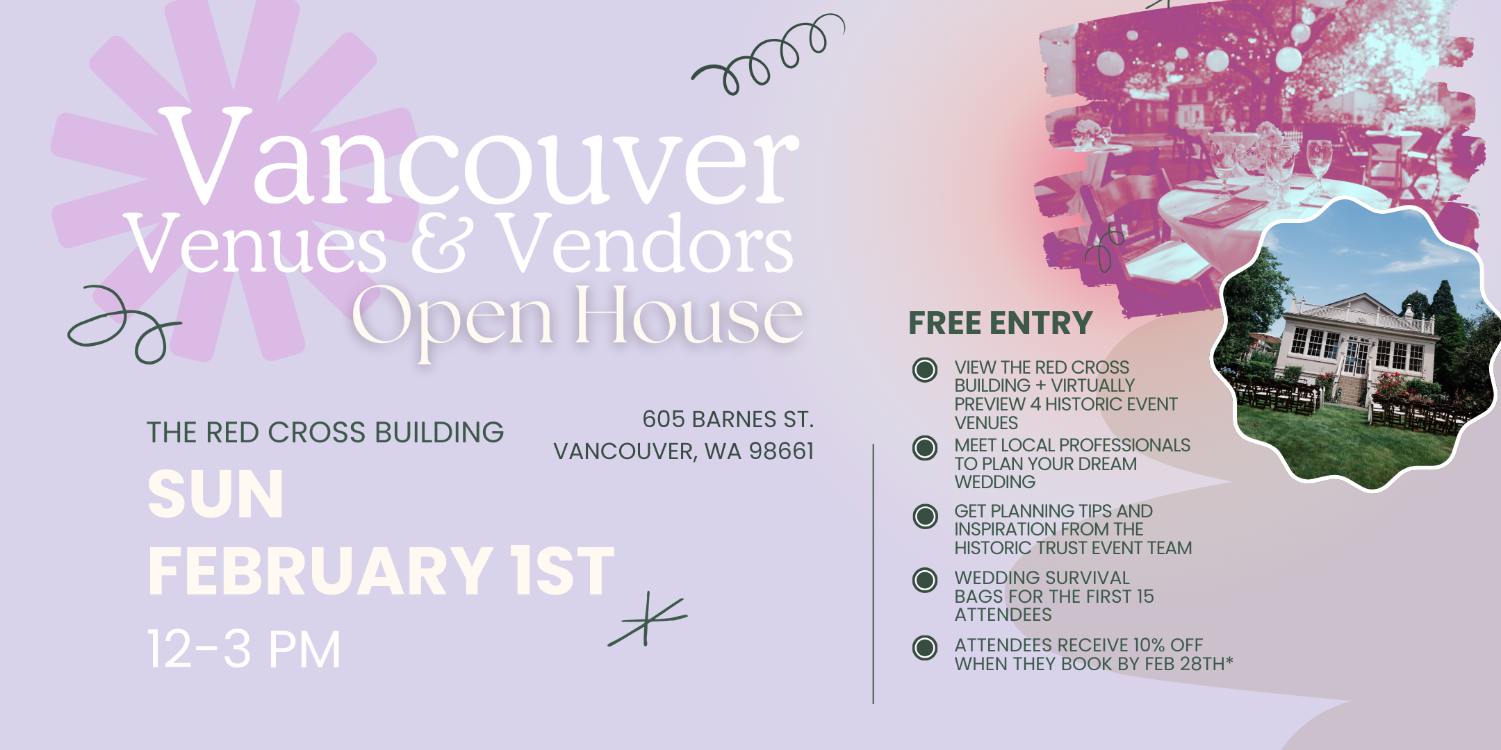 VANCOUVER, WA — The Historic Trust will host the Vancouver Venues & Vendors Open House on Sunday, February 1, 2026, from 12:00 to 3:00 PM at the historic Red Cross Building, located at 605 Barnes Street in downtown Vancouver.