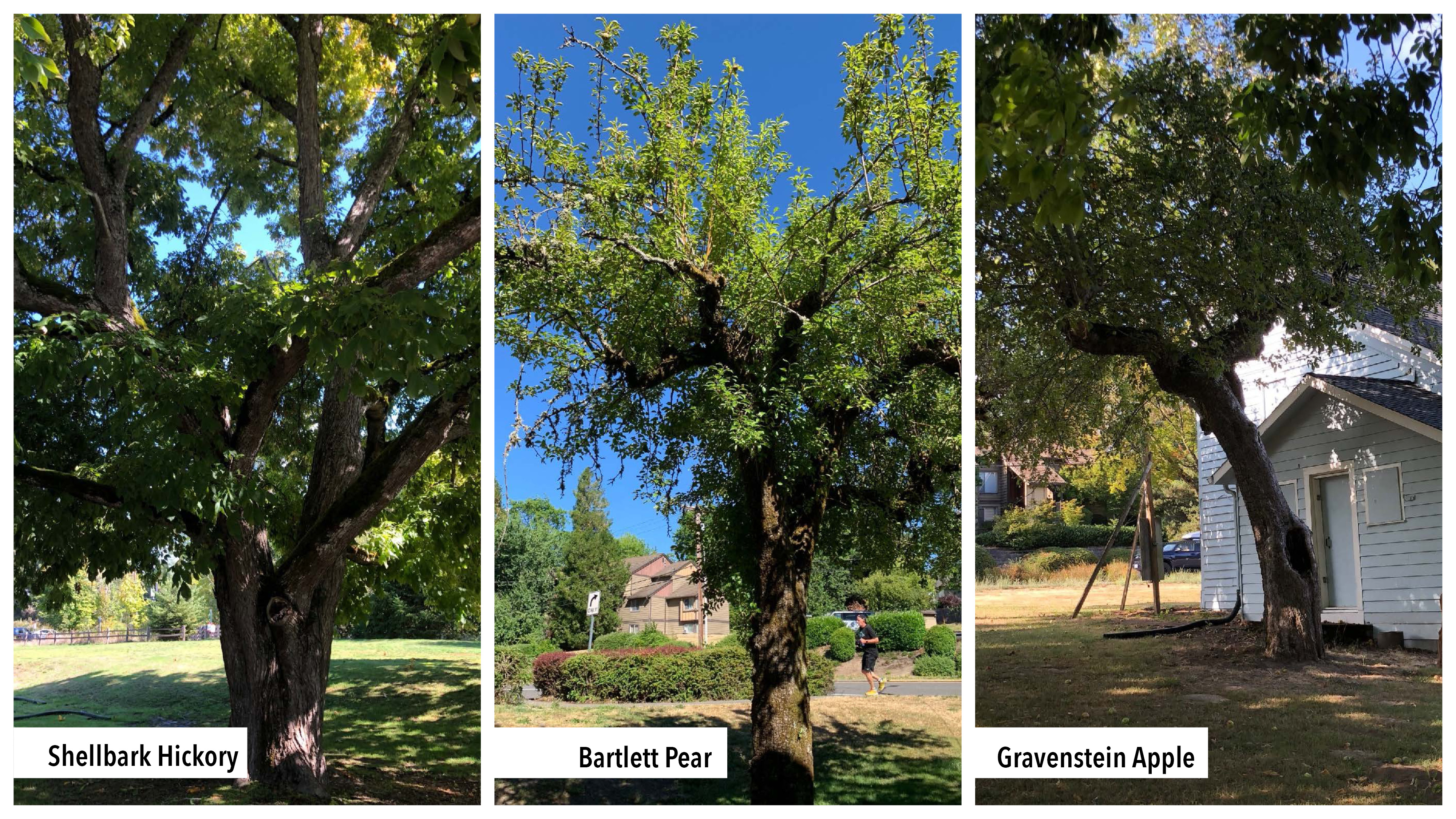 Three fruit trees- a Shellbark Hickory, a Bartlett Pear, and a Gravenstein Apple- are landscape features of the historic Young House and estimated to be around 150 years old. These trees represent an example of early home management and food production, typical of an early farm or residential property of the period. Collectively, they are Oregon’s 85th Heritage Tree Designation.
