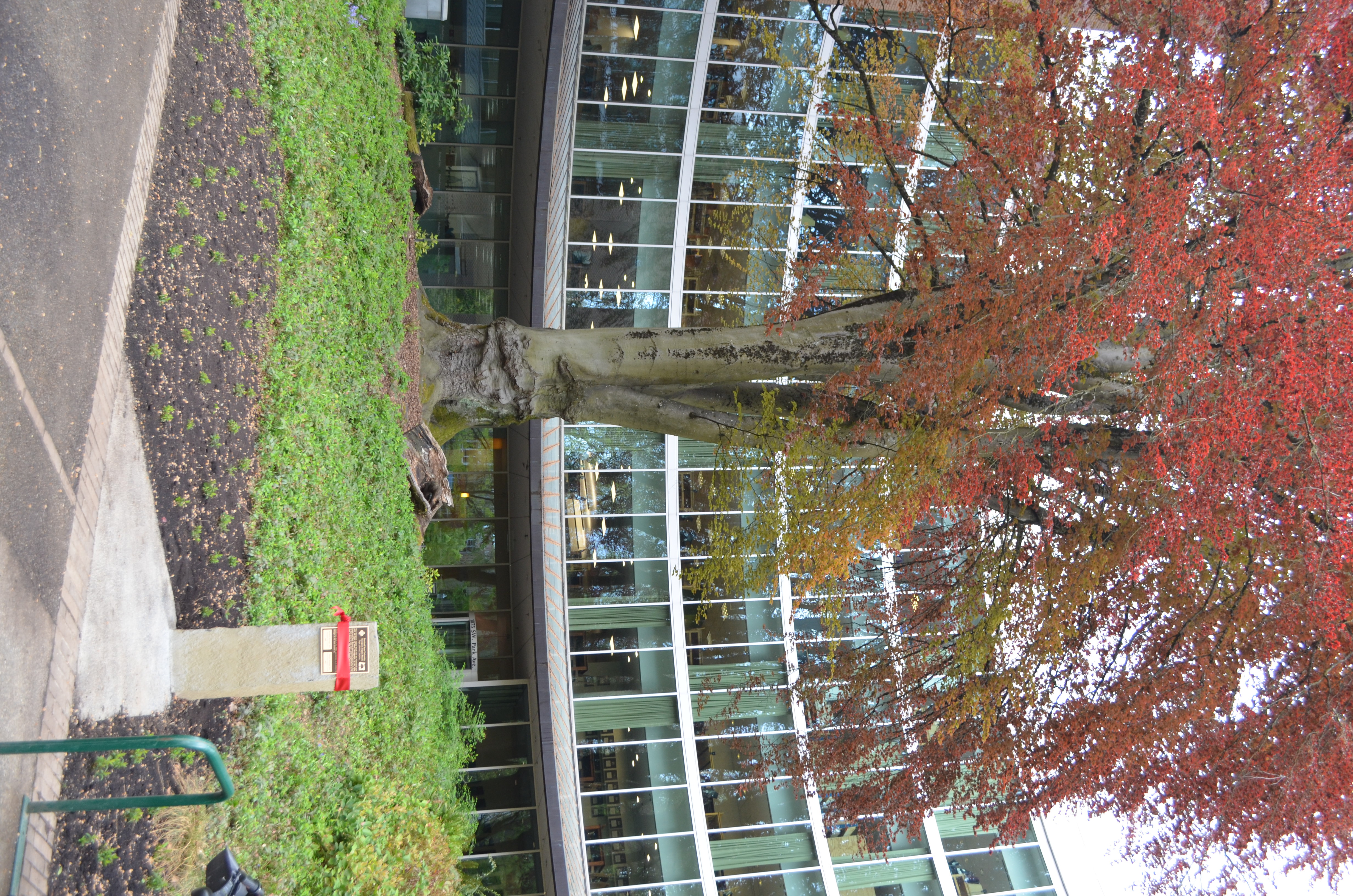 PSU Copper Beech in front of Library: Survived urban growth to become a prominent architectural feature of Millar Library.