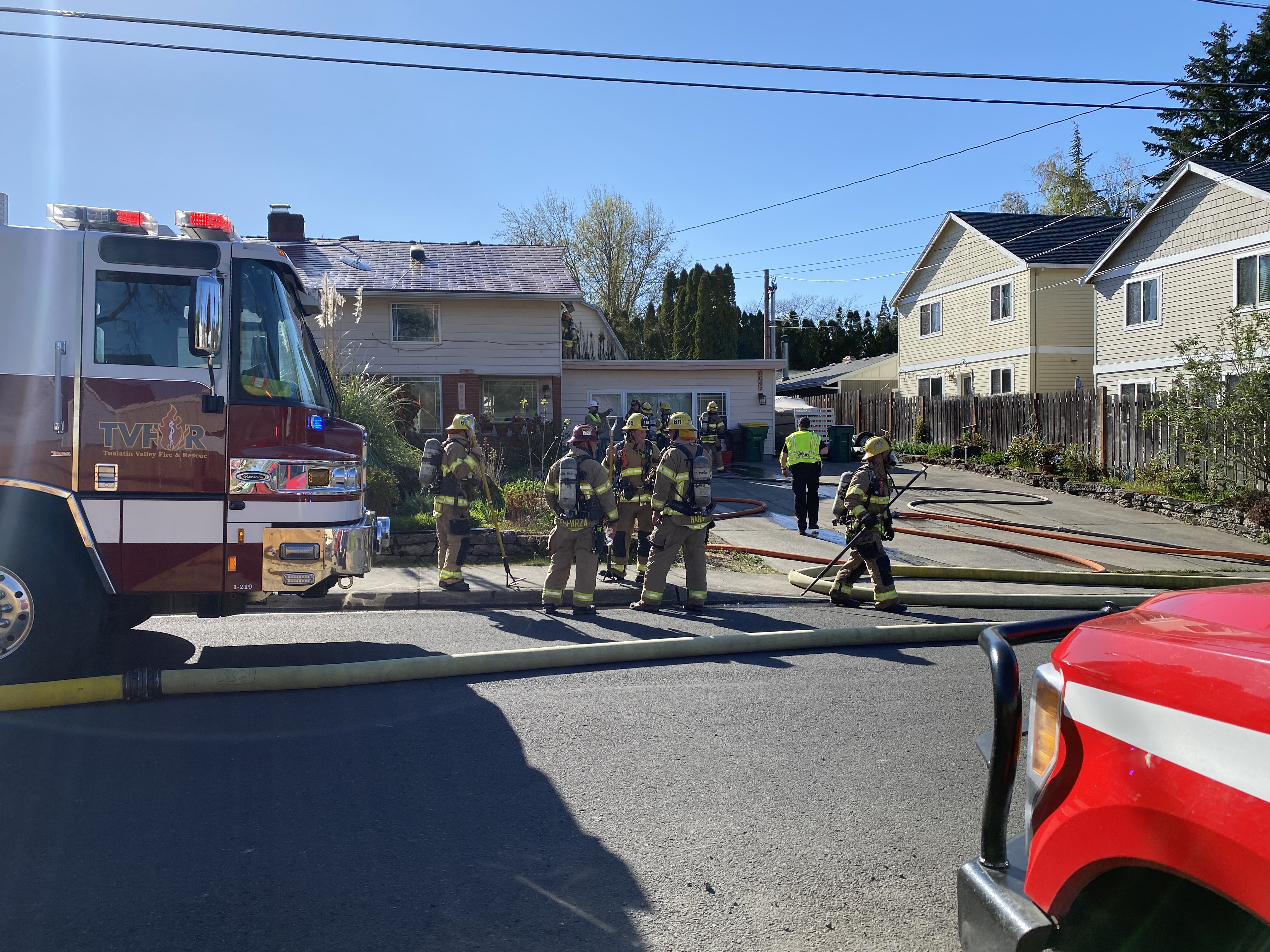 Just after 4 p.m. today, firefighters from Tualatin Valley Fire & Rescue were dispatched to a house fire off 167th Avenue in Beaverton. The crew staffed on the fire engine from Cooper Mountain Station 69 happened to come across the house fire while headed to a medical call in the area. They immediately had 911 dispatchers add another nearby unit to the medical call while they stopped to respond to the fire.