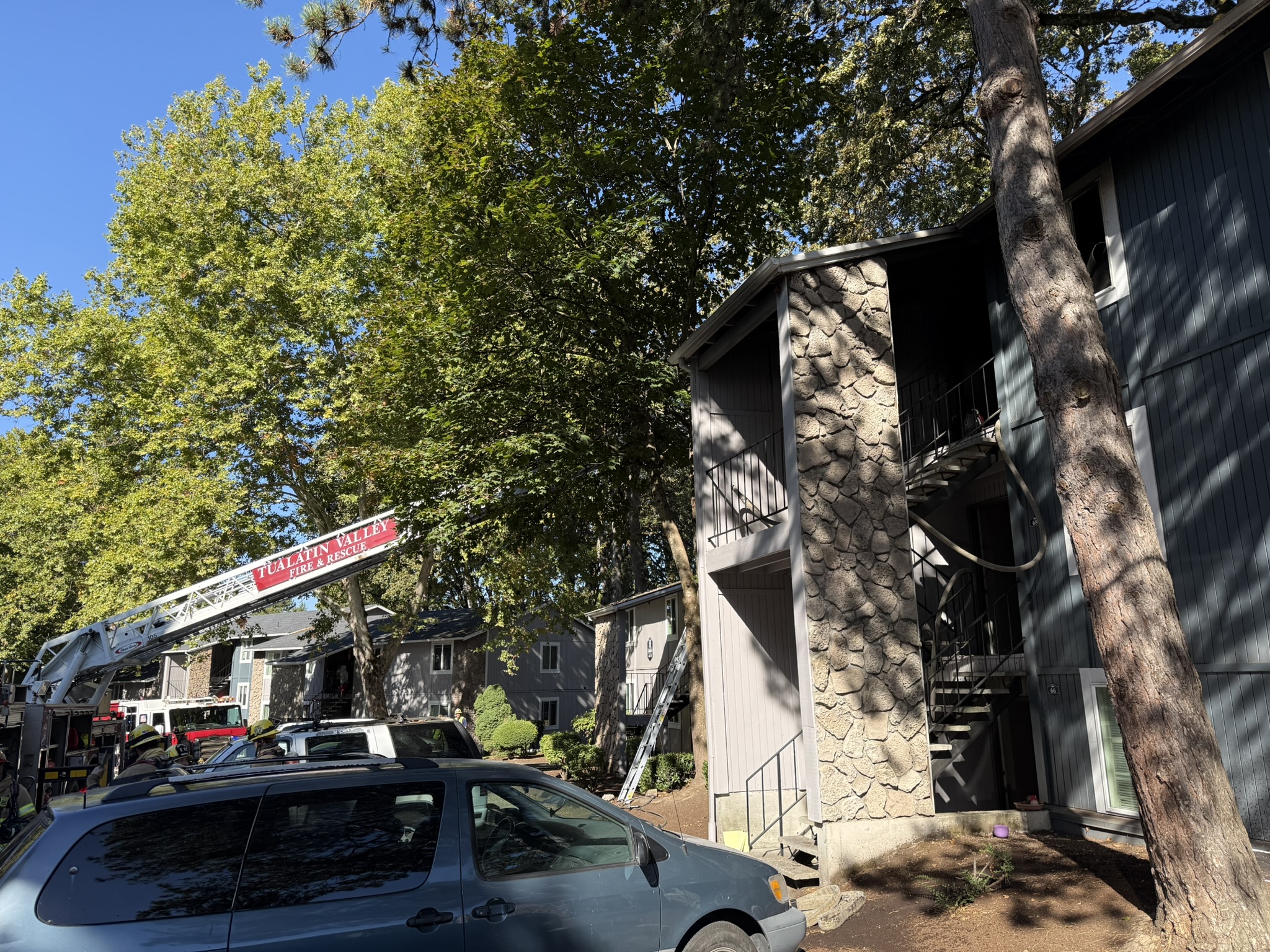 At 2:00 p.m. today, multiple callers to 911 reported a fire at multi-family housing complex in the 14600 block of Northwest Cornell Road.
