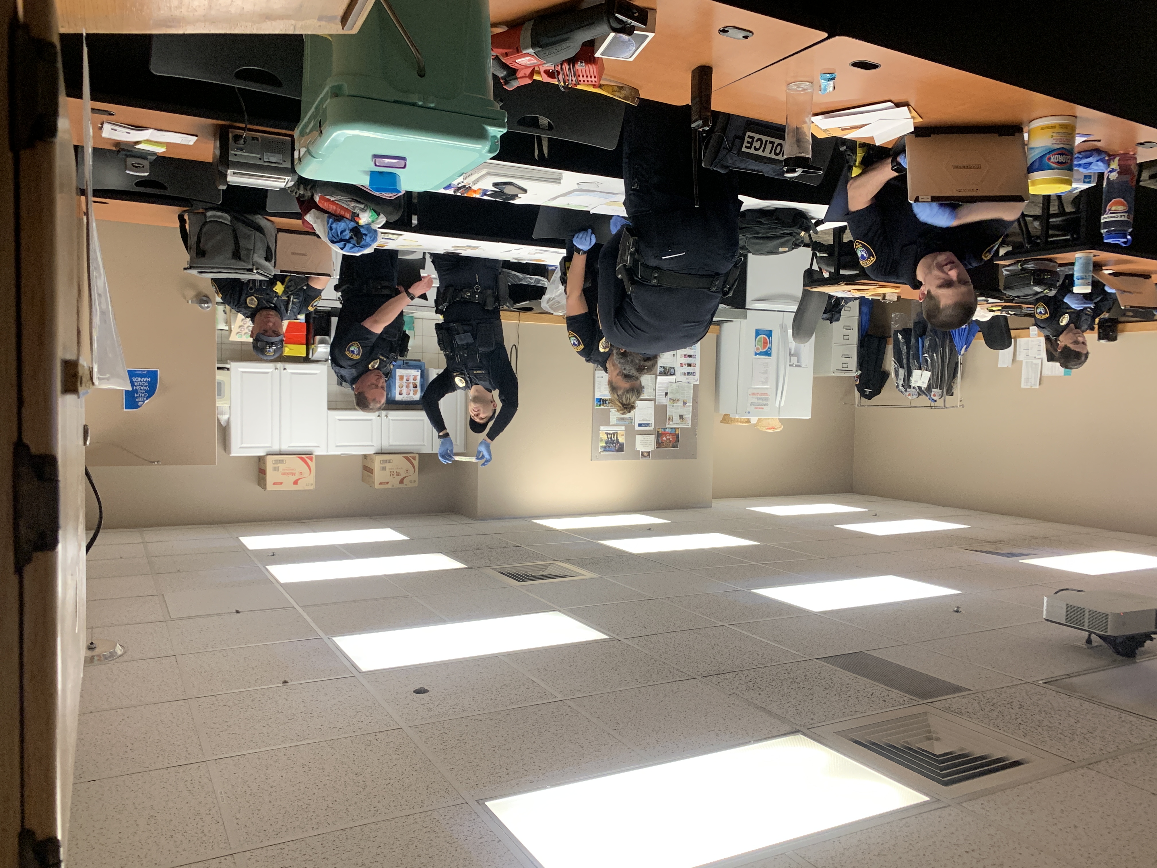 Attached is a photo of officers cataloging the recovered property as evidence.