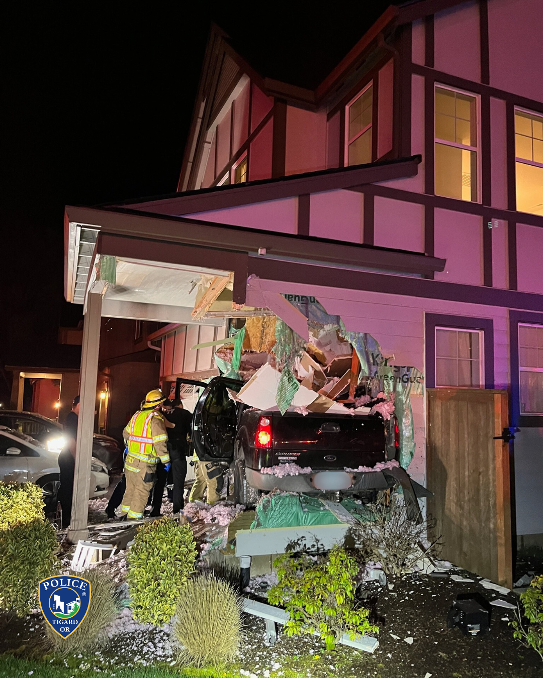 When officers arrived, the driver was initially unconscious, and both he and a passenger were trapped inside the truck. Firefighters with Tualatin Valley Fire & Rescue had to extricate them both, and they were taken to the hospital with minor injuries.