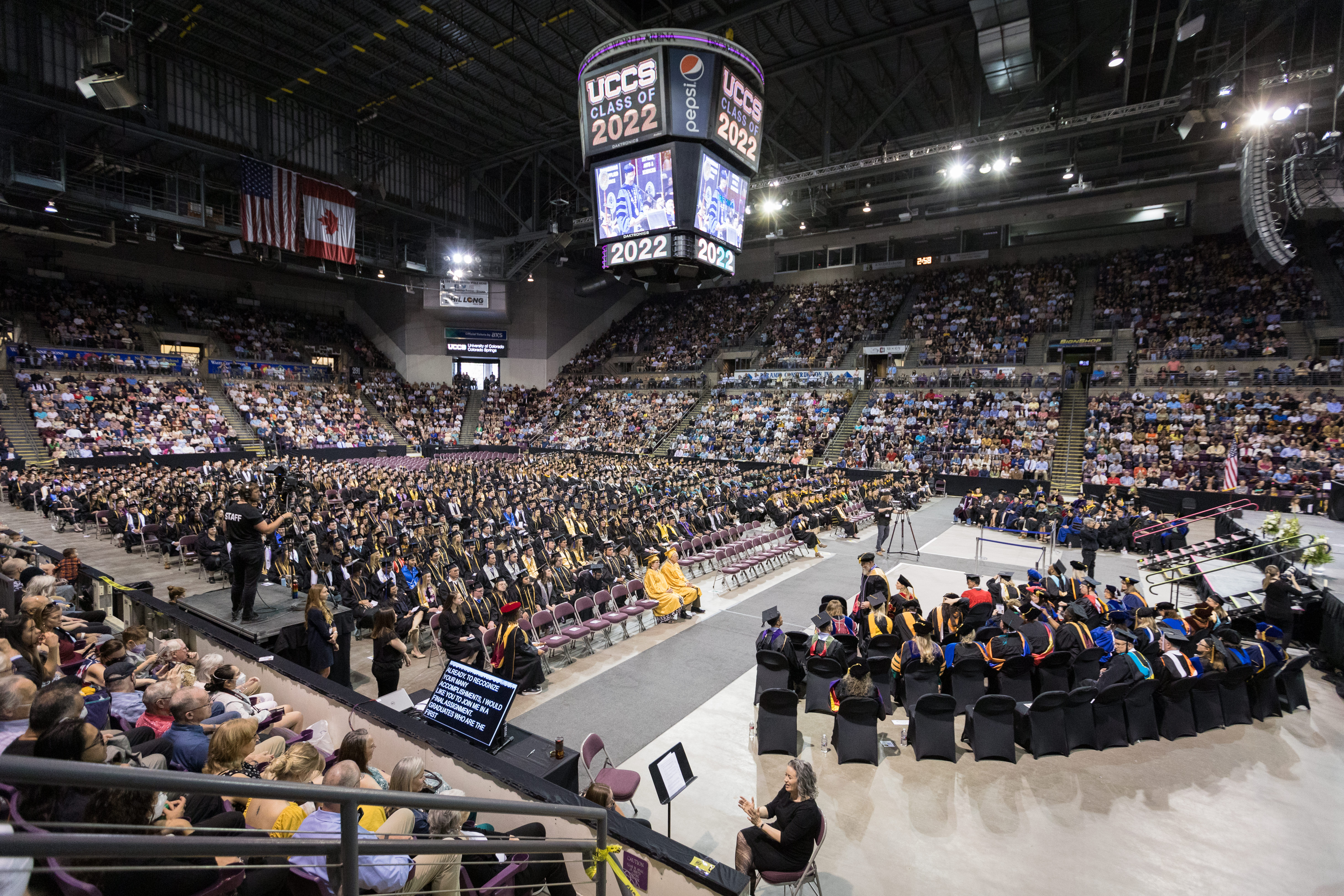 The UCCS spring 2022 Commencement ceremonies will celebrate degrees conferred to nearly 1,600 graduates. More than 1,200 attended the morning and afternoon ceremonies at the Broadmoor World Arena on May 13, 2022, along with family and friends. See the full Commencement program online. View the livestreamed ceremony on YouTube.