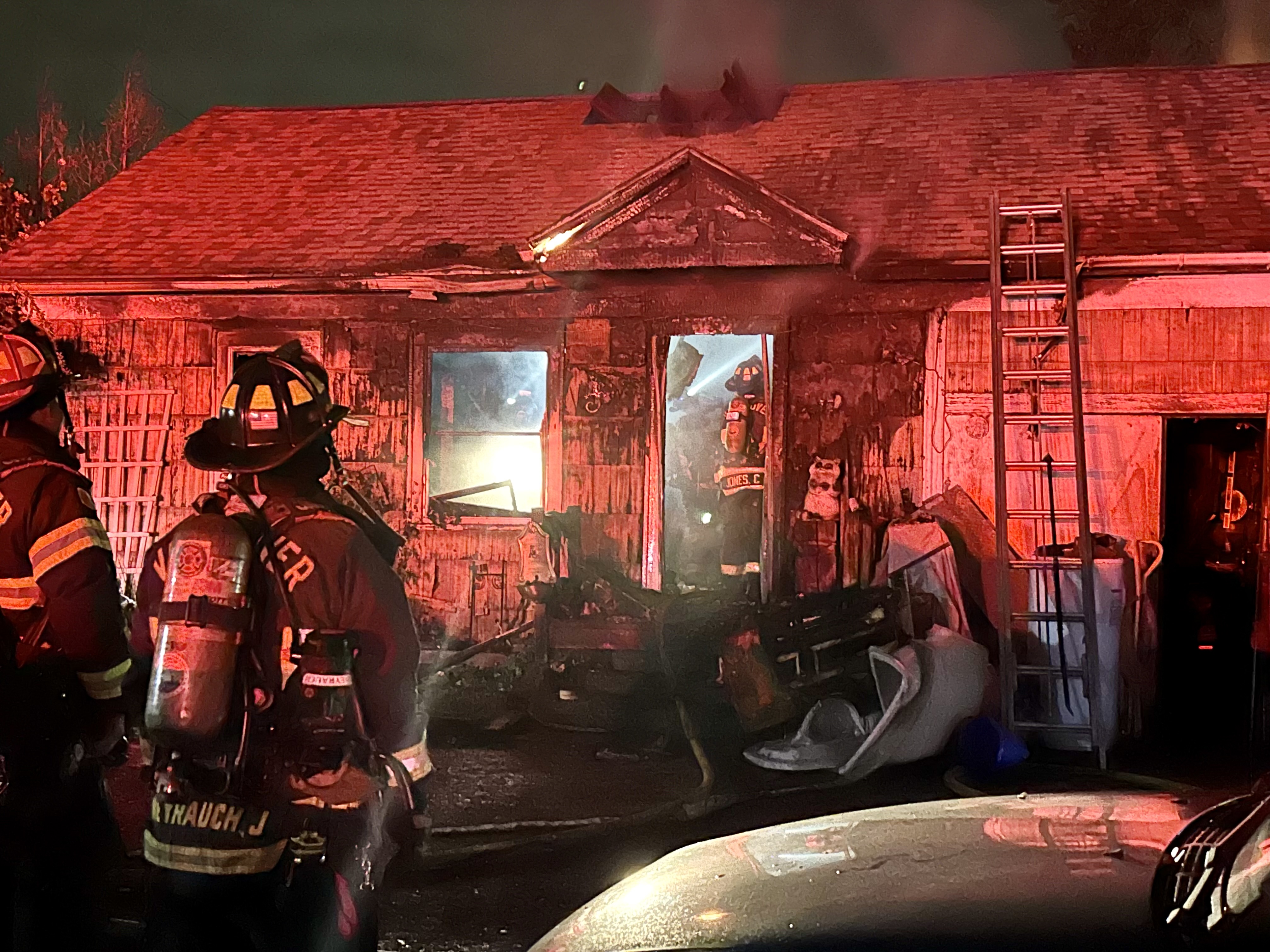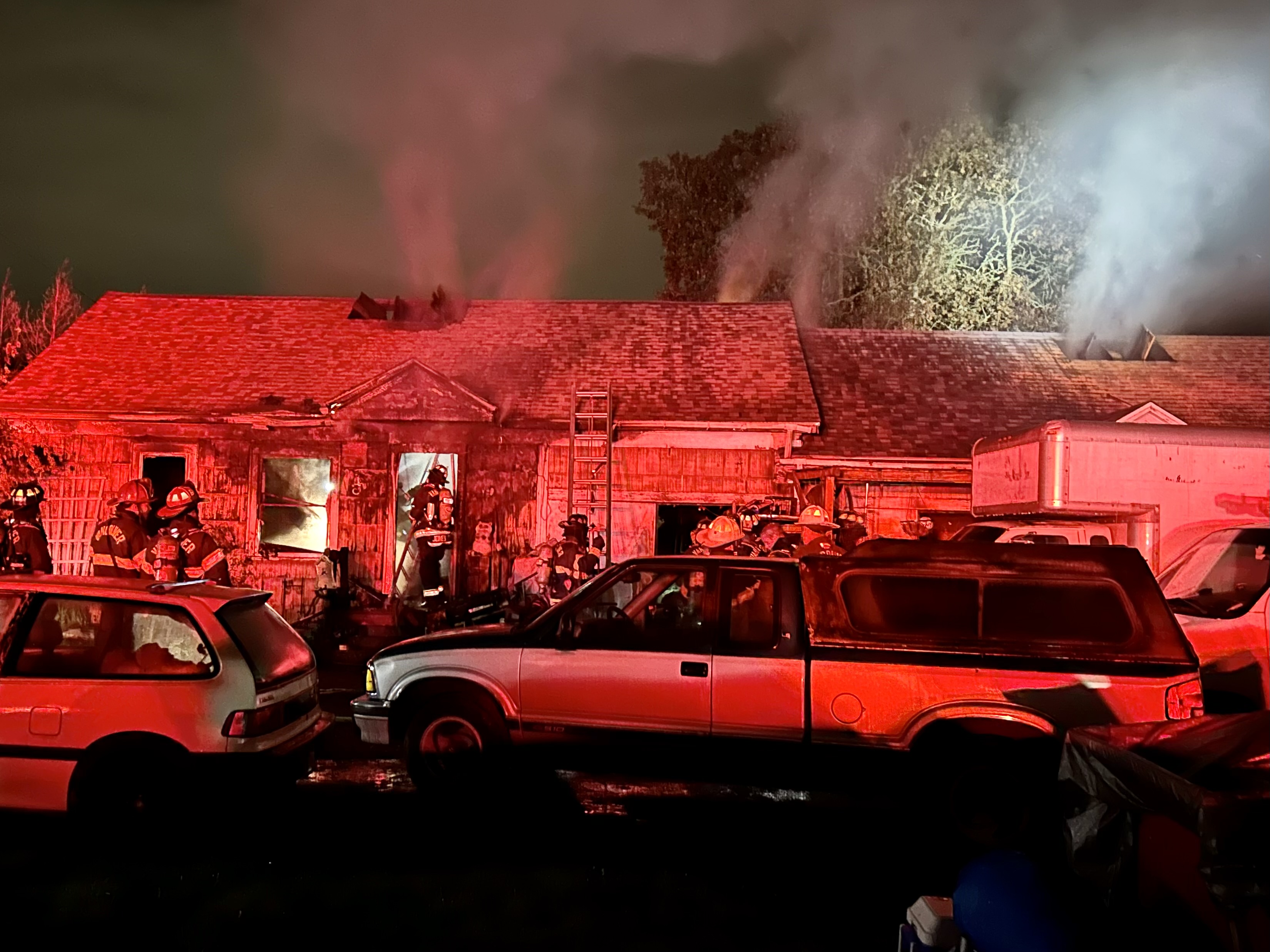 At 11:15 PM Thursday evening, the Vancouver Fire Department was dispatched to 1010 SE Morgan RD for a structure fire. First arriving crews found heavy smoke and fire coming from the front of the duplex. Hose lines were deployed to attack the fire and several holes were cut in the roof to release smoke and heat out of the building. It took 30 minutes to bring the fire under control after it spread to the attic. About 12 units were on scene for a total of approximately 30 firefighters. A critical safety concern was observed during the incident as an energized power line came down around the building but did not result in any injuries. One adult from the duplex was evaluated by AMR for smoke inhalation and is being evaluated at a local area hospital for non-life threatening injuries. No other injuries were reported. The Red Cross was requested to assist several adults who were displaced. The cause of the fire is under investigation by the Vancouver Fire Marshal’s Office.