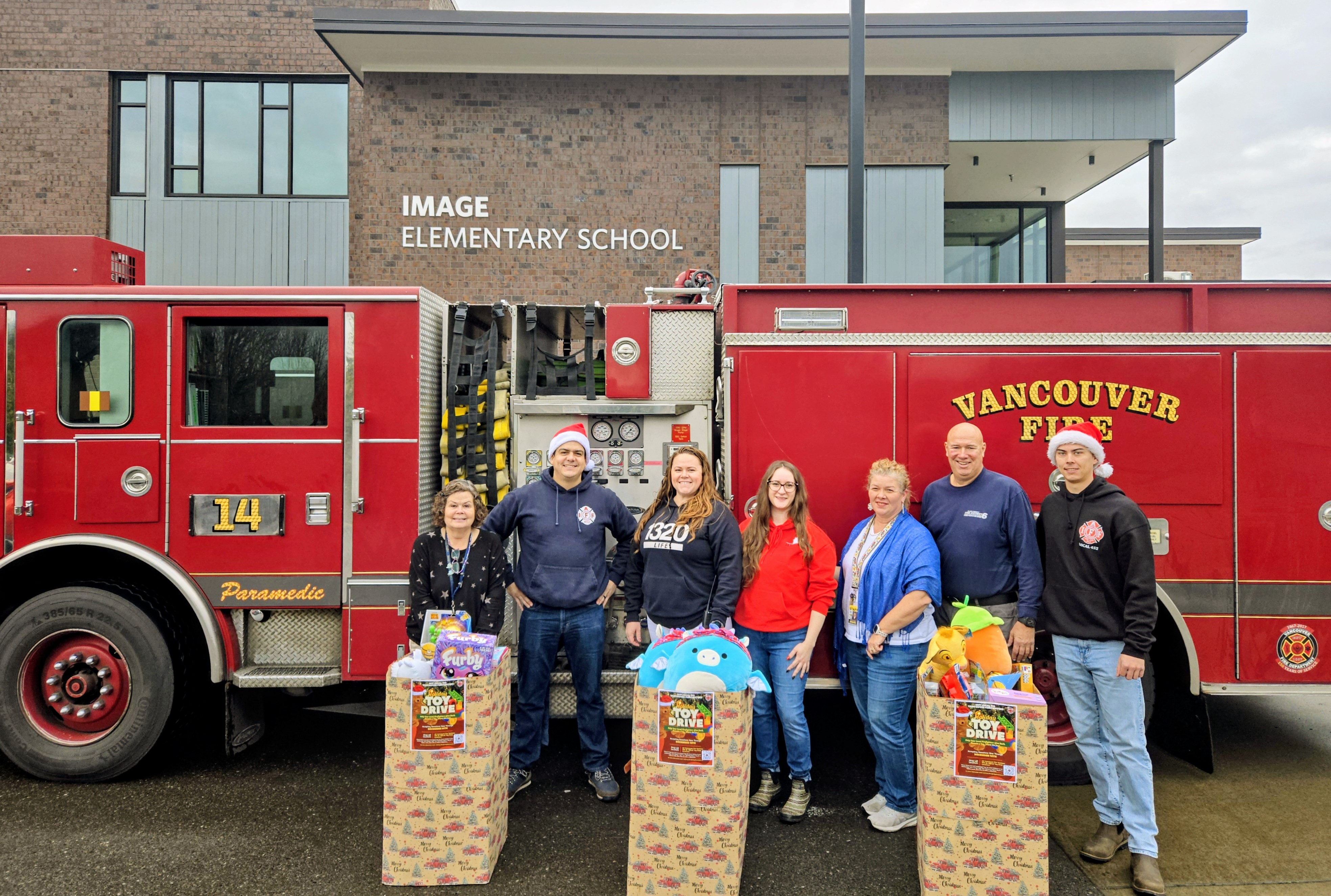 Attached photos from Image Elementary, Riverview Elementary, and Endeavour Elementary highlight the impact of this year’s toy drive and the smiles created through this collective effort. Pictured are Vancouver Firefighter/Paramedic Christian Vazques and Vancouver Firefighter Zachary Day assisting with toy distribution.
