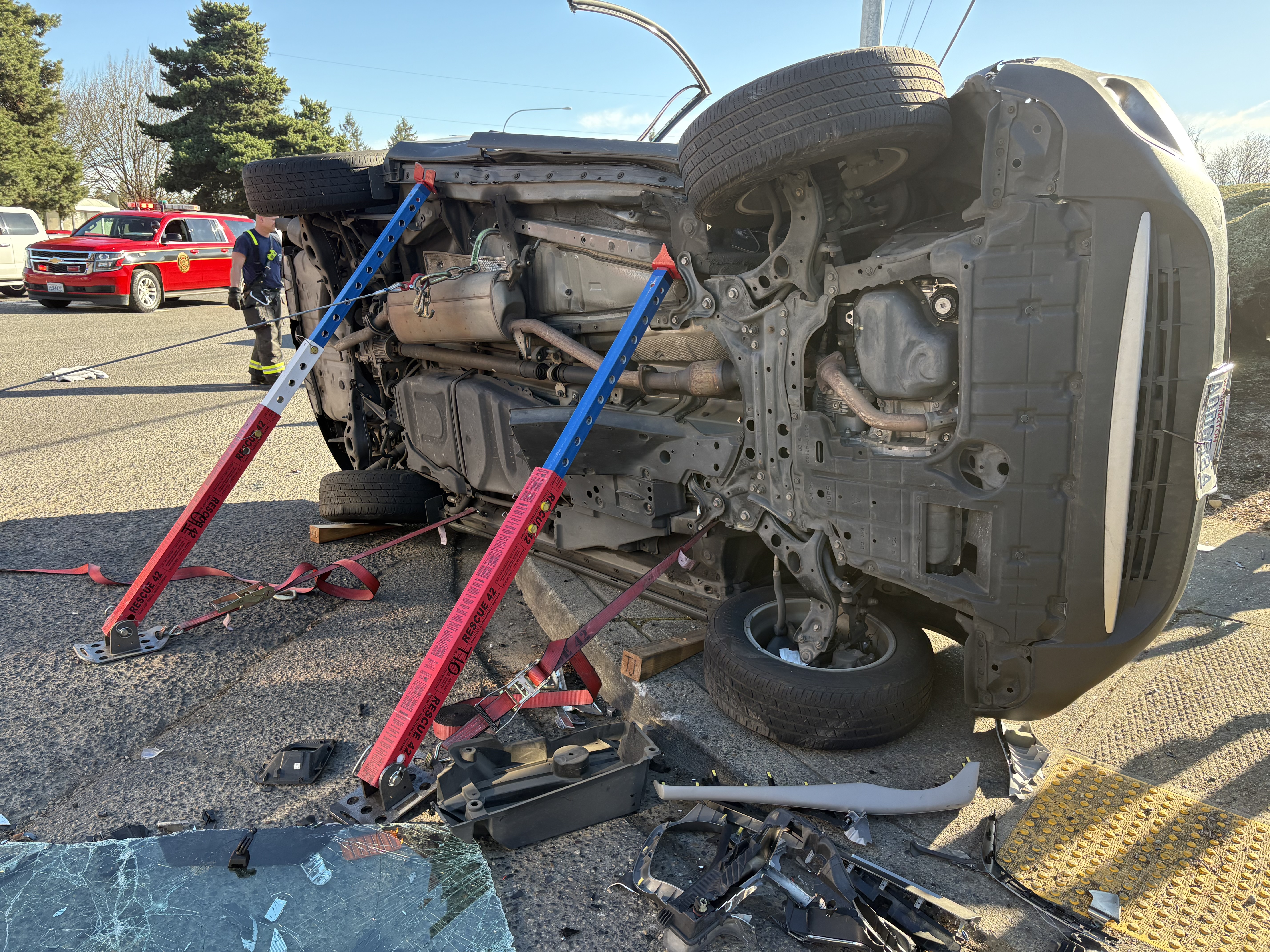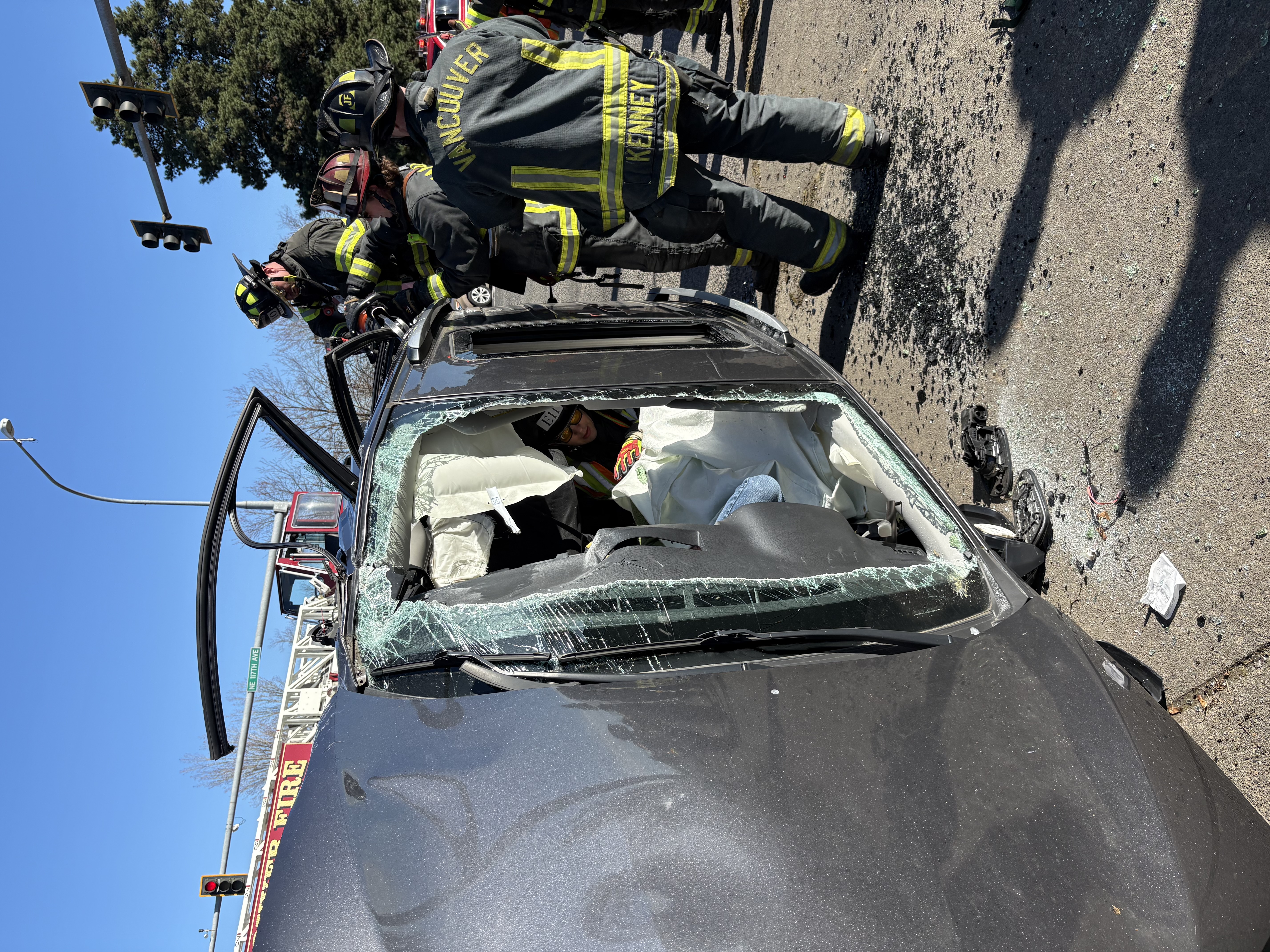 At 2:23 p.m. this afternoon, Vancouver Fire Department was dispatched to a motor vehicle accident at the intersection of NE 117th Avenue and NE 87th Street in Vancouver.