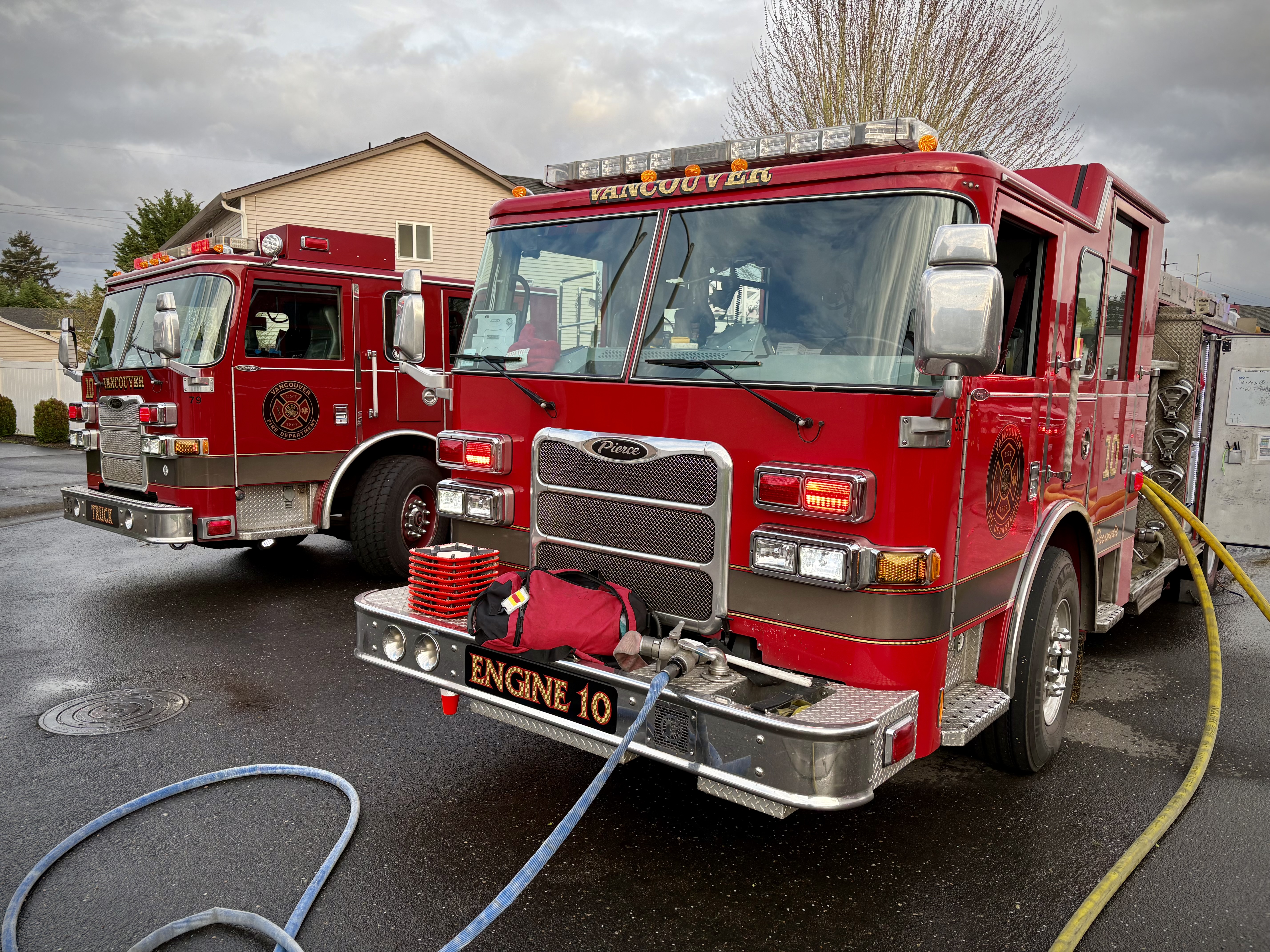 Vancouver Fire Department responded to a house fire at 2406 NE166th Ct just after 6 p.m. this evening, March 24. First-arriving units found a two-story home with a living room fire, which crews aggressively extinguished, preventing it from spreading. However, thick smoke filled the rest of the home, displacing five residents. Thankfully, no one was injured.