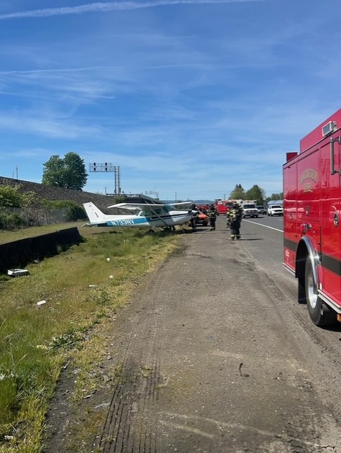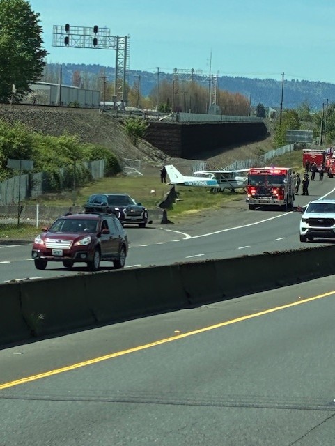 At approximately 12:32 p.m. on April 18, 2026, Vancouver Fire Department crews were dispatched to reports of a Cessna aircraft landing on State Route 14. Upon arrival, crews located the aircraft in the grass along the eastbound shoulder near milepost 2.