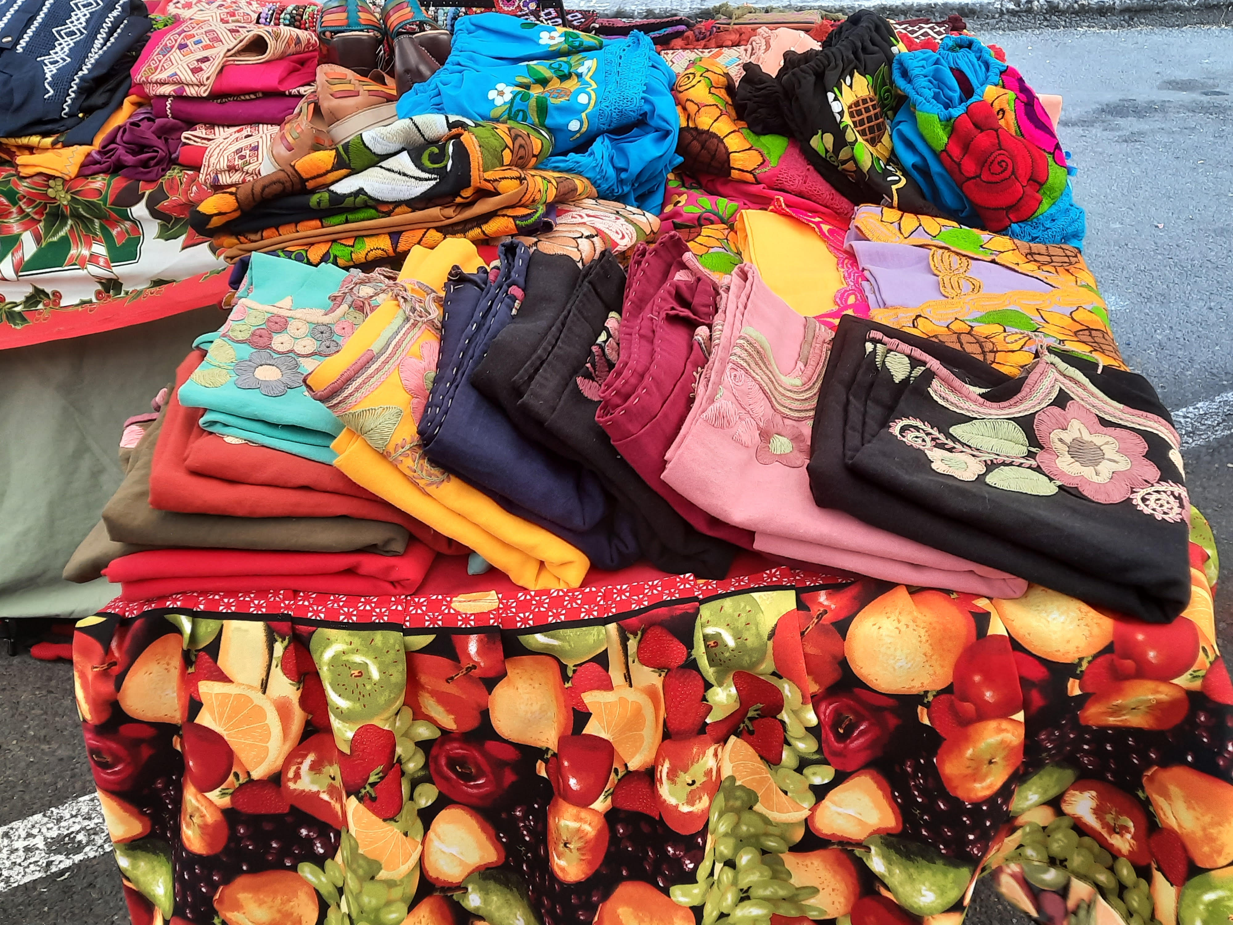 Ukrainian art, Micronesian earrings, forged knives, island textiles, organic teas, jams and preserves, candles, soaps, and more.