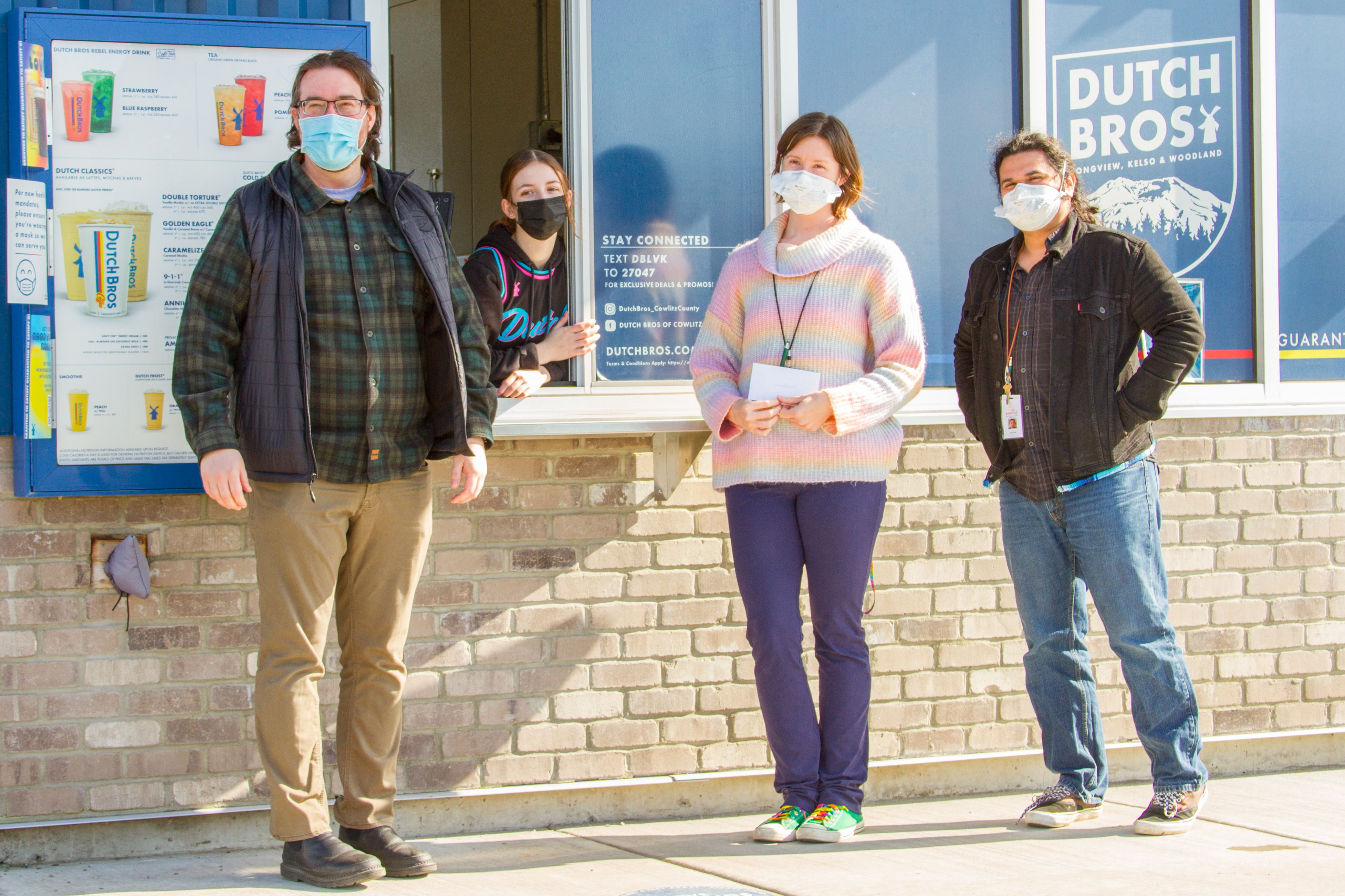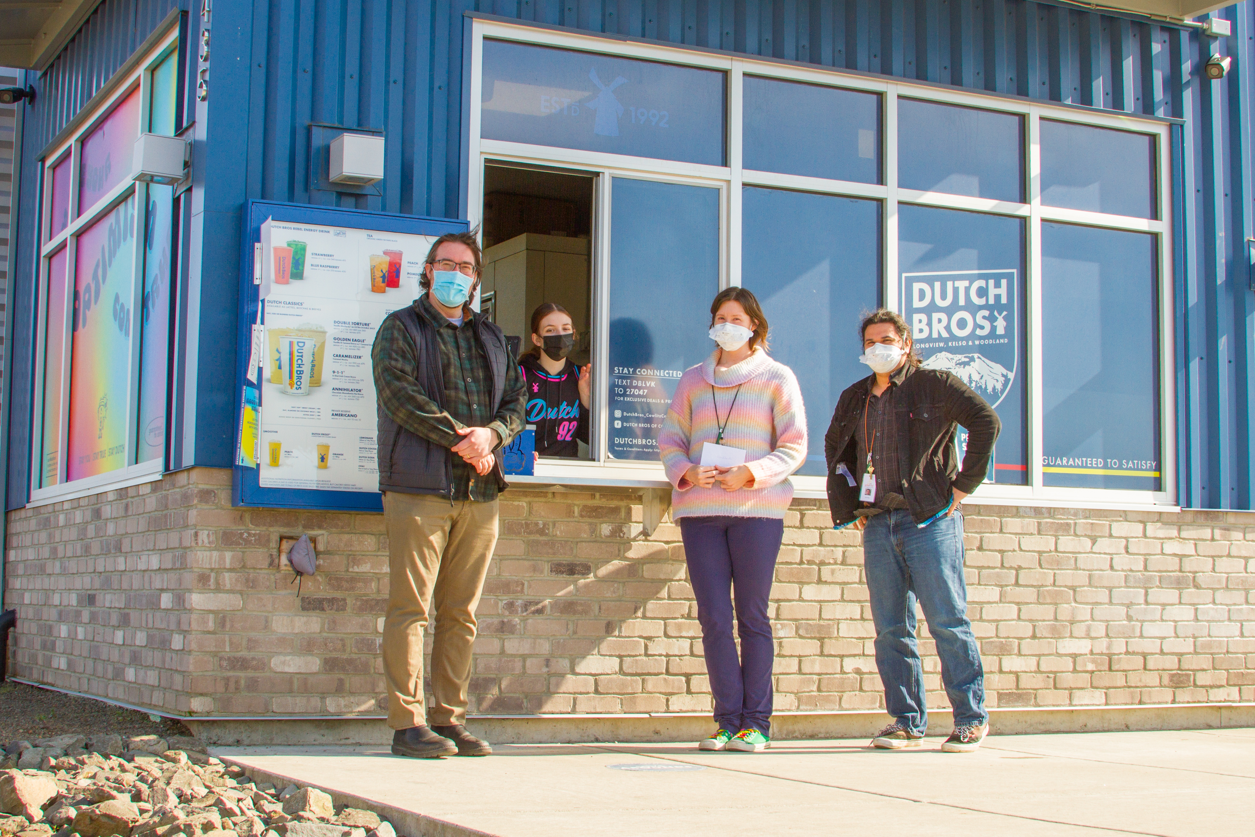 Wednesday, March 2, 2022-Woodland, WA-Dutch Bros, the regional drive-through coffee chain, donated $1,103.04 to Woodland Public Schools’ Family Community Resource Center’s (FCRC) Food Pantry program as part of their “Dutch Luv” campaign. On Friday, February 18, Dutch Bros donated $1 from every purchase made at the Woodland location to the FCRC’s Food Pantry program.