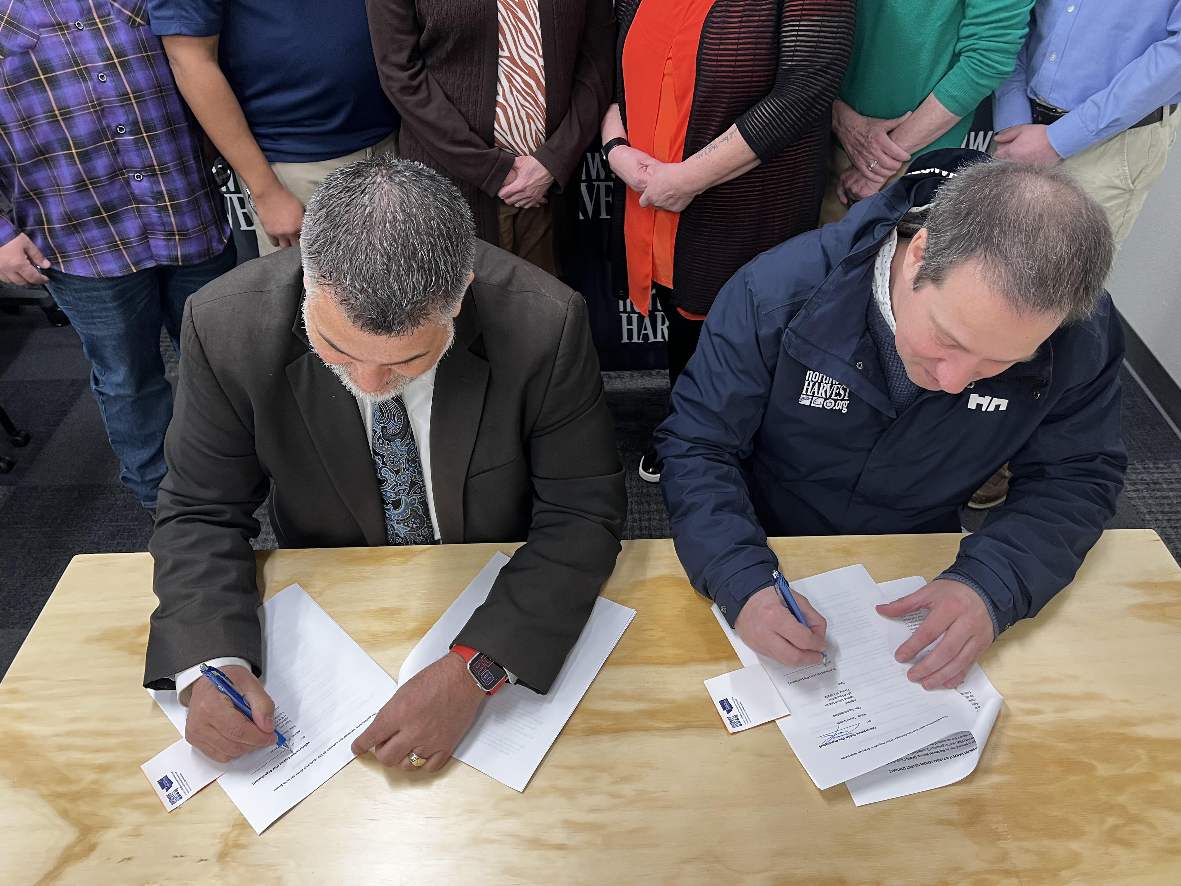On Tuesday, March 21, the Yakima School District and Northwest Harvest signed a contract to work together to receive, organize, store, and prep-for-delivery the food needed to make student meals, moving this service from the district warehouse on North 4th Avenue to the new Northwest Harvest cold storage facility off of Fruitvale Blvd.