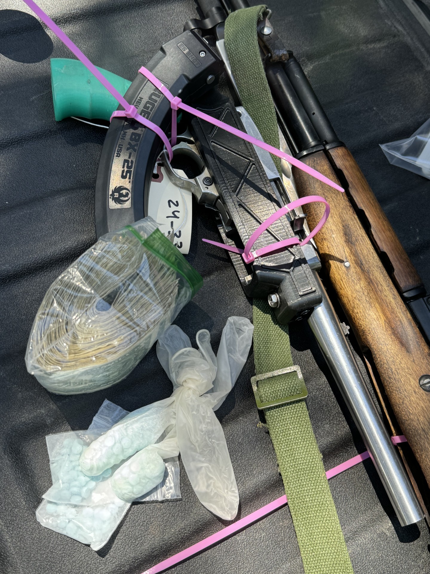 CODE Agents then applied for and were granted a search warrant for the residence where Armando Nieves-Cintora and Jessica Grace Lee are currently residing. At approximately 1220 PM, members of the Deschutes County Sheriff's Office and CODE Team served a search warrant in the 52000 block of River Birch in Lapine. CODE Detectives located fentanyl pills, packaging material, a scale, cash, a rifle, and sawed-off shotgun during the search warrant service.