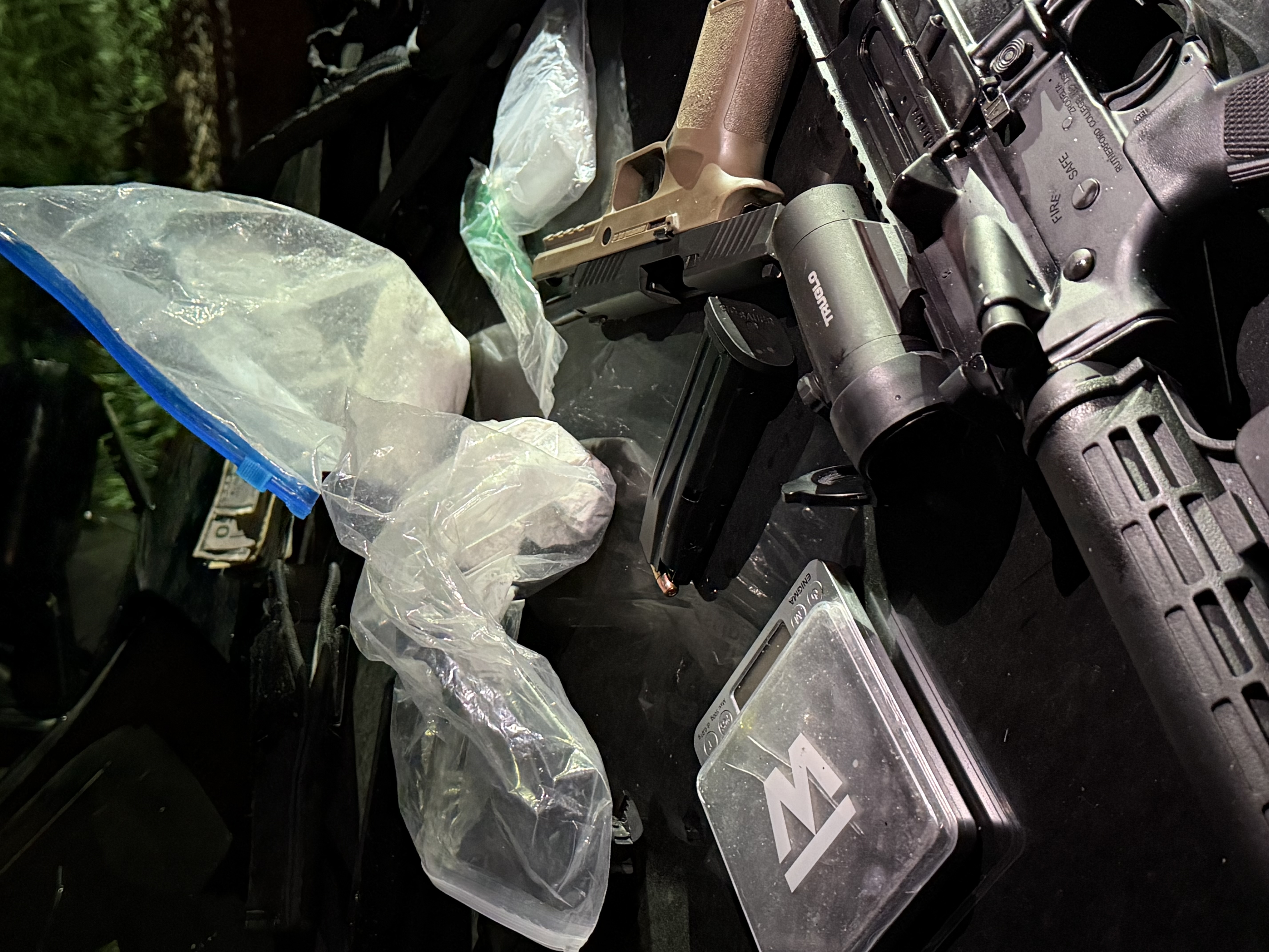 At approximately 9 p.m. on Wednesday, Sept. 24, 2025, detectives with the Central Oregon Drug Enforcement (CODE) team concluded a long-term drug investigation with the seizure of a commercial amount of methamphetamine, a commercial amount of fentanyl, guns, and three arrests.