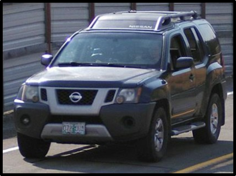 McGrew is a white female, approximately 5'7" tall and weighing 130lbs, with blonde hair and blue eyes. She is associated with a dark gray 2012 Nissan Xterra with Oregon license plate 072DUA.