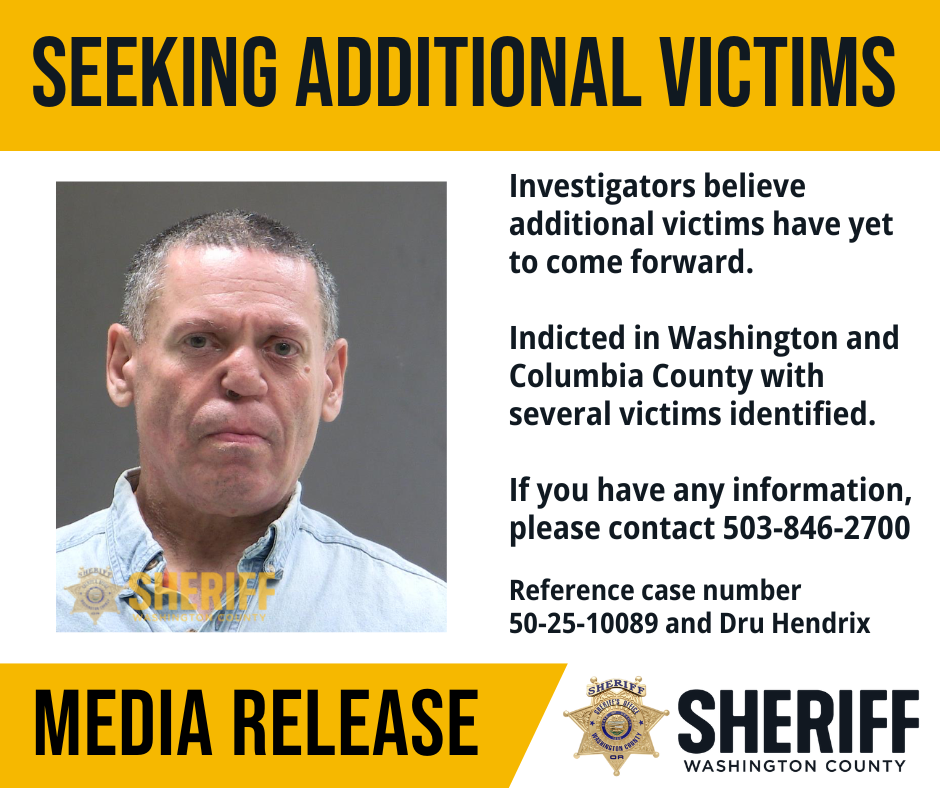 Detectives from Washington County, the Scappoose Police Department, and the Portland Police Bureau continue to investigate the new reports and would like to speak with anyone who has not yet come forward. If you have information, please call the Washington County Sheriff’s Office at 503-846-2700 and reference case 50-25-10089 to speak with a detective.