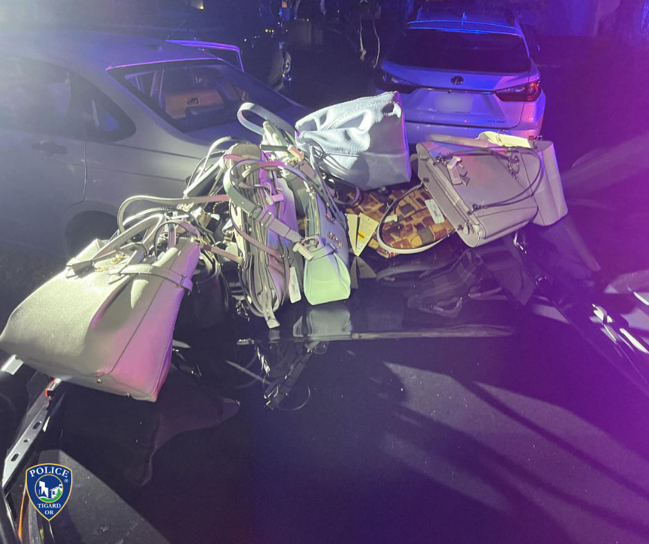 On February 28, 2026, at 6:15PM employees at a store on SW Washington Square Road called to report a theft in progress, where a man stole purses, loaded them into a waiting car, changed clothes and returned to the store to steal more. Responding officers saw a car matching the description of the suspect’s car leaving the area and tried to initiate a traffic stop, but the driver kept going. The suspect drove a loop around an uninvolved car in the middle of an intersection, then drove down SW Brightfield Circle. When he reached the end of the street, he took off on foot until he was cornered in a fenced yard and was safely arrested.